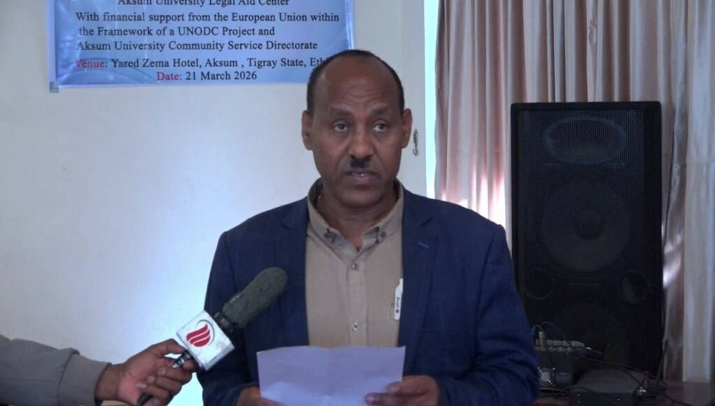 AKSUM, TIGRAY, (Ethiopia) — The Aksum University Legal Aid Center, in collaboration with the Tigray Environmental and Sustainable Development Organization (TESDO), recently convened a vital public discussion workshop focused on “Emerging Crimes in War-Affected Tigray: Emphasis on Environmental Crimes and Sustainability.” This workshop represents a core component of the ongoing project, “Revitalizing Post-Conflict Criminal Justice in Tigray: Strengthening Legal Aid and Promoting Restorative Justice.” The initiative is prominently funded by the European Union through a United Nations Office on Drugs and Crime (UNODC) program, with significant co-funding and institutional support from Aksum University’s Community Service Directorate. The event featured a distinguished assembly of Aksum University’s top leadership, including the President, H.E. Prof. Gebreyesus Brhane; the Vice President for Research and Technology Transfer, H.E. Dr. Mekonen Aregai; and the Vice President for Academic Affairs, H.E. Dr. Mulugeta Berihu. The dialogue was further enriched by the presence of college deans, academic scholars, religious and community leaders, and representatives from various justice institutions, government offices, and civil society organizations. During the sessions, participants highlighted the grave environmental toll of the Tigray War, noting that the destruction of government institutions and the collapse of regulatory control have led to unprecedented levels of deforestation and land degradation. There was a unanimous emphasis on the urgent need for coordinated, sustained engagement to address these challenges and mitigate the accelerating effects of climate change in the region. The workshop concluded with a call to integrate environmental protection into the broader revitalization of the criminal justice system, ensuring that sustainability remains a pillar of Tigray’s post-conflict recovery.